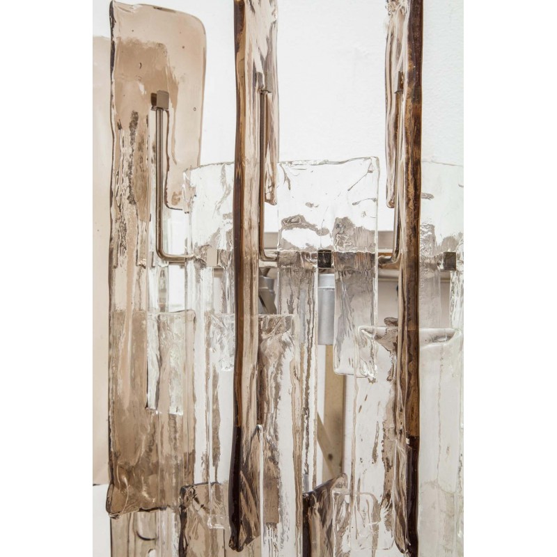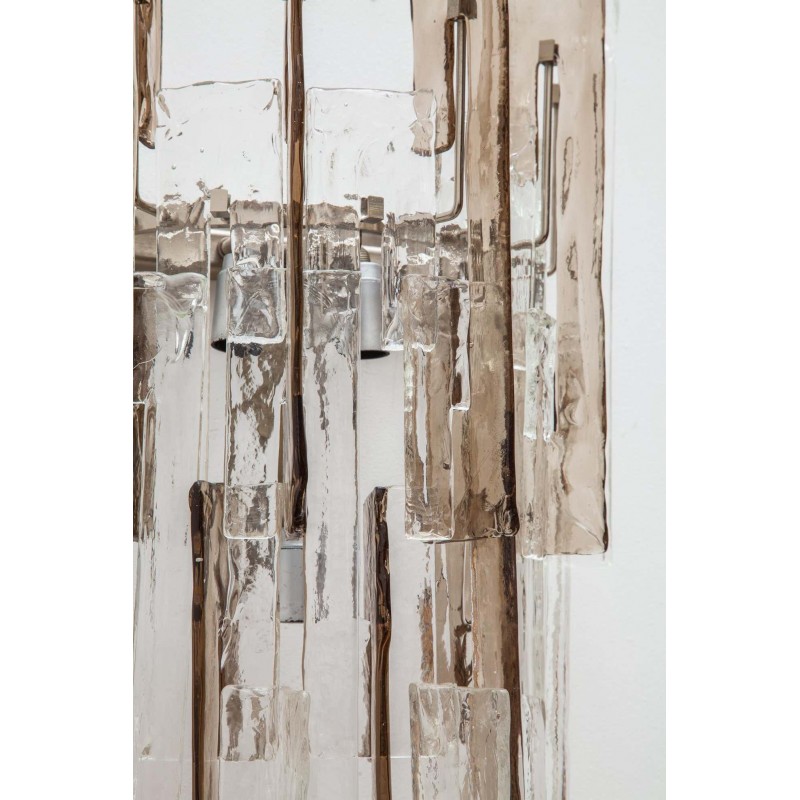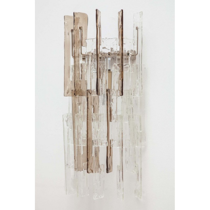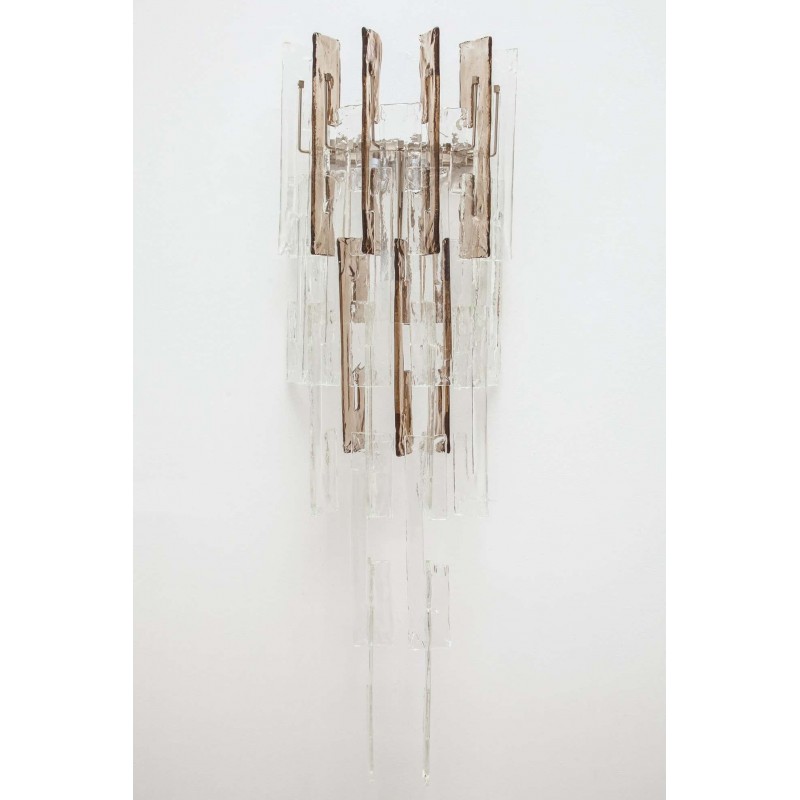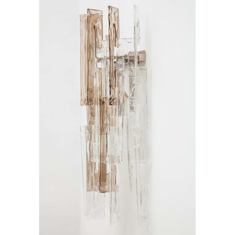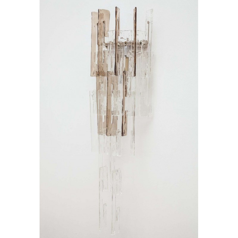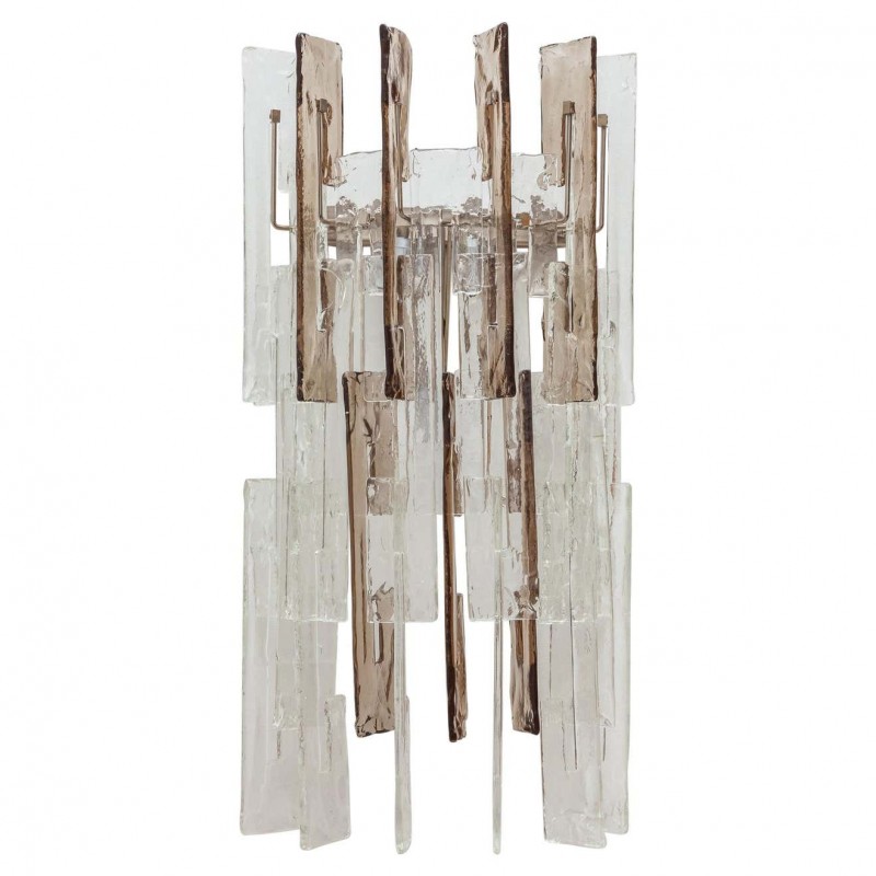 Incredible and rare vintage wall light by Carlo Nason for Mazzega, Italy. Interlocking Murano glass pieces can be linked together in many different ways. Our designs transcend history and will be treasured for many years to come. With various styles and periods to select from, you will be transported through time as you are selecting one of the finest chandeliers in the industry. These pieces combine classic forms with modern appeal, delivering the finest in your lighting and decor needs.  In addition to providing an outstanding piece, we are also able to create this piece in whatever size, color, and finish you need. The warm, inviting ambiance of any space can always be filled with the enchanting, sparkling beauty of a classic crystal chandelier.