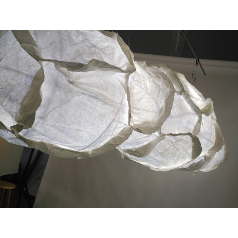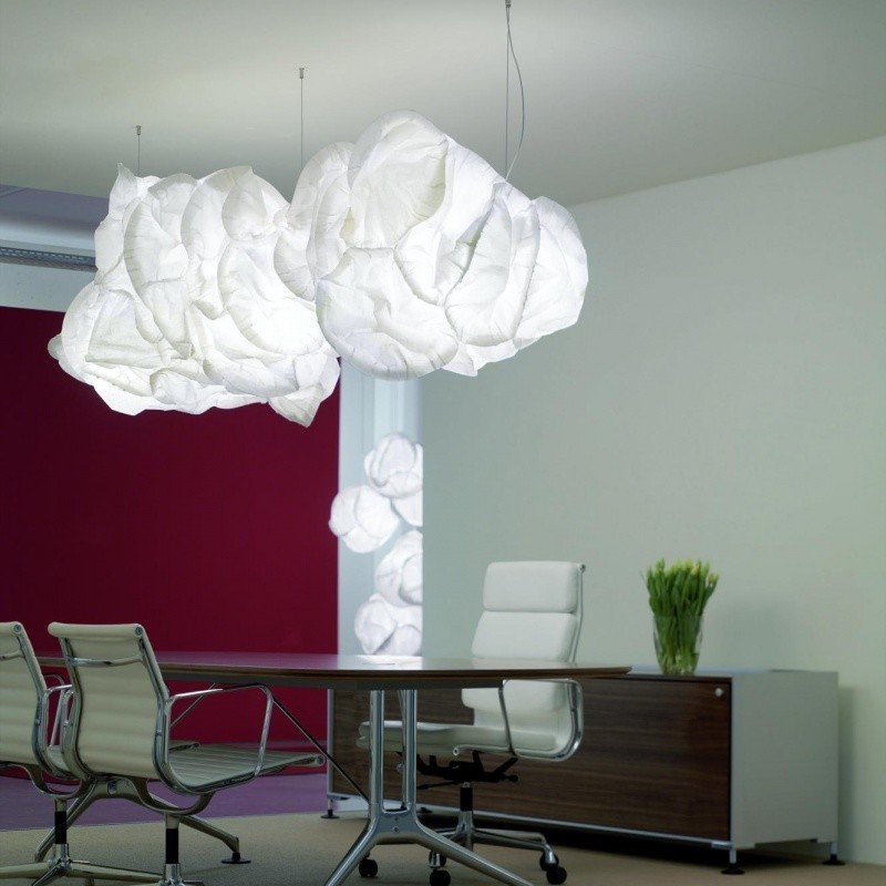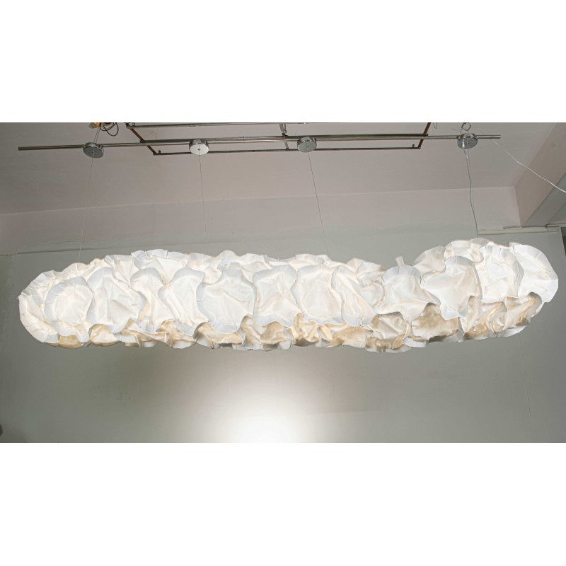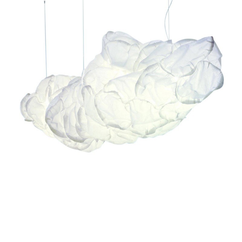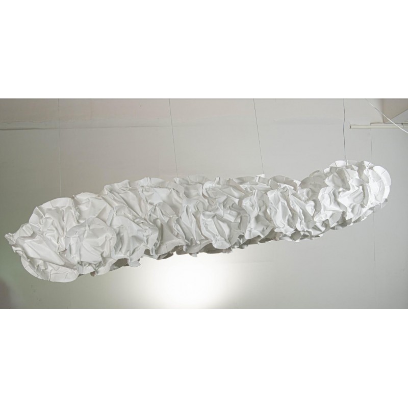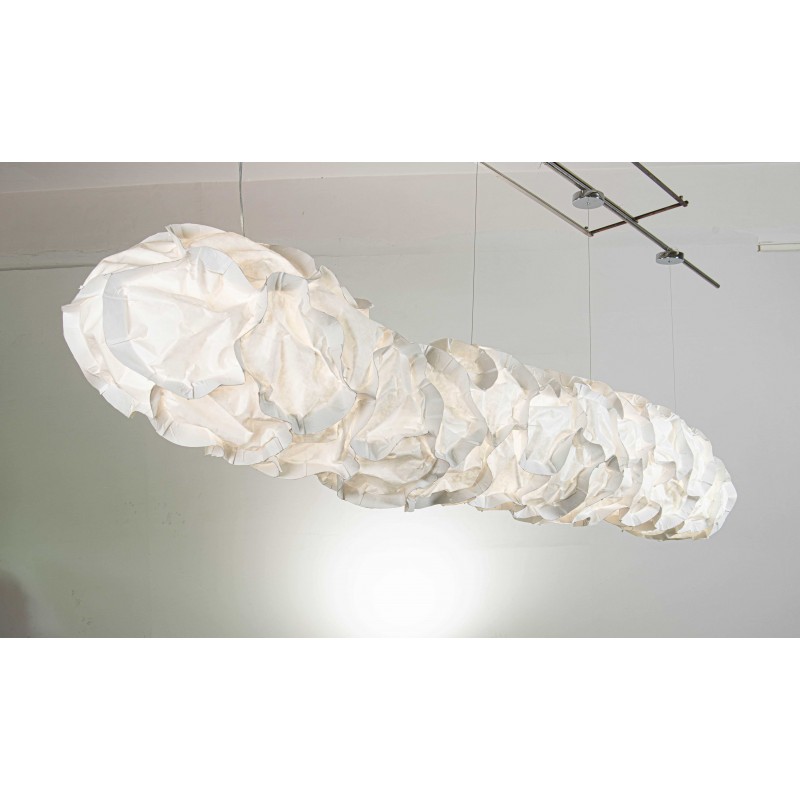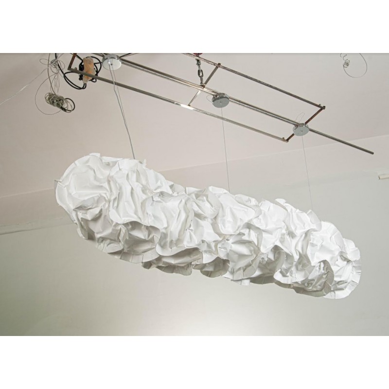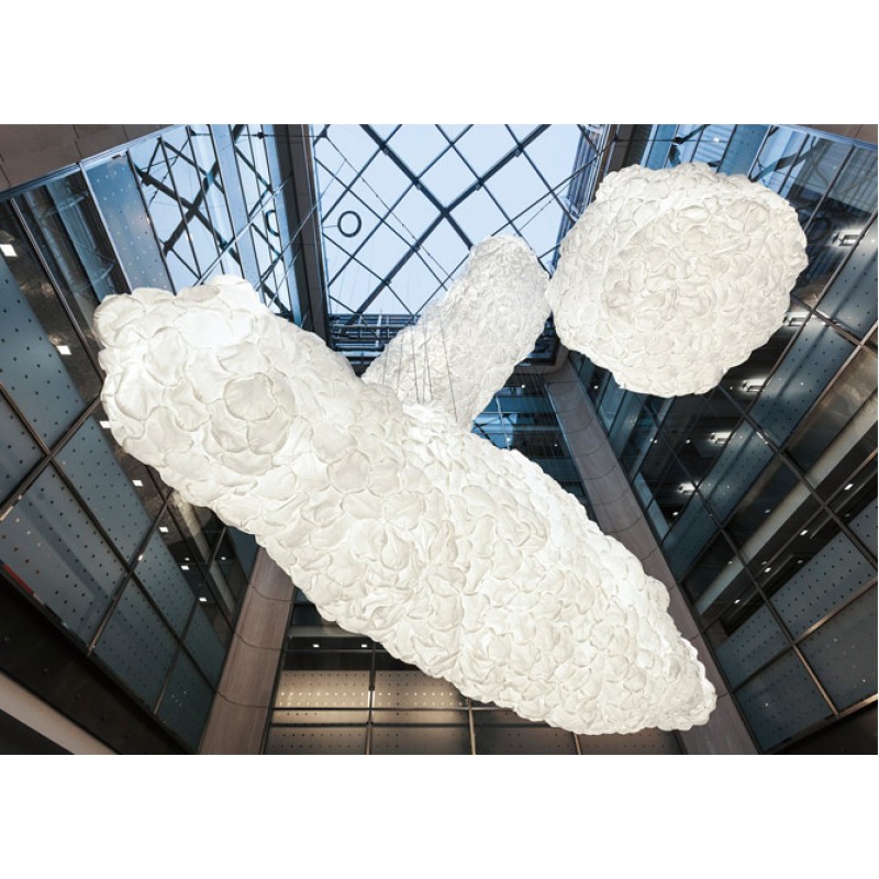 This magnificent structure of a light provides a natural look and spectacular feel to any environment. T Their poetic character and great variety transform the fair-weather clouds CLOUD, into an atmospheric light sculpture. Its durable, high-tech material can be sculptured to make each light unique to other forms and sizes individually made. The voluminous lamp is suitable for large rooms and has sound-softening features. The material is a multi-refined polyester fleece which is virtually tear-proof, resistant to aging and is almost non-flammable.