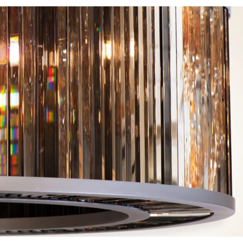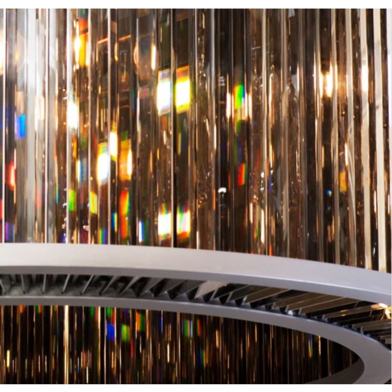 Original one of a kind chandelier. No two alike, each chandelier created from this design is a one of a kind. This hanging light looks interesting from every angle, and creates enticing shadows. One of the most technical chandeliers created. We approach this sculptural object in a contemporary, unexpected and creative way. Light and shadow interplay while existing harmoniously, using both to manipulate space and thought.