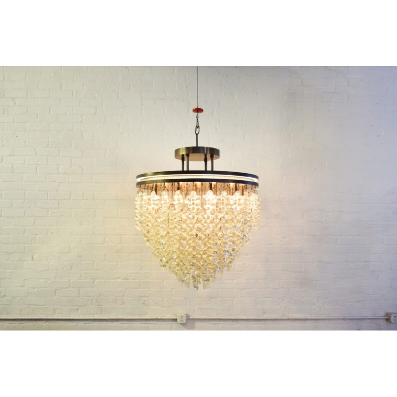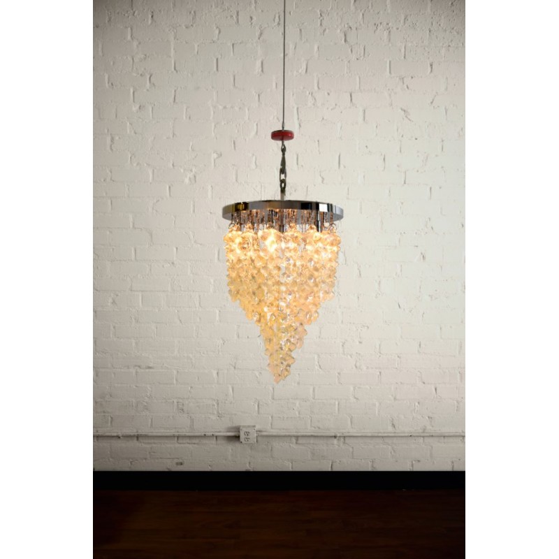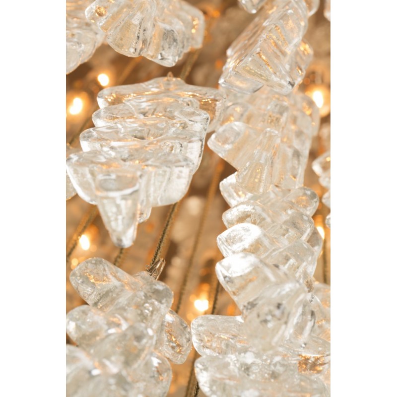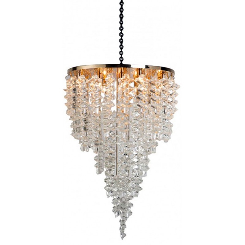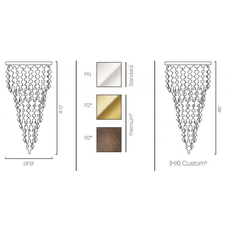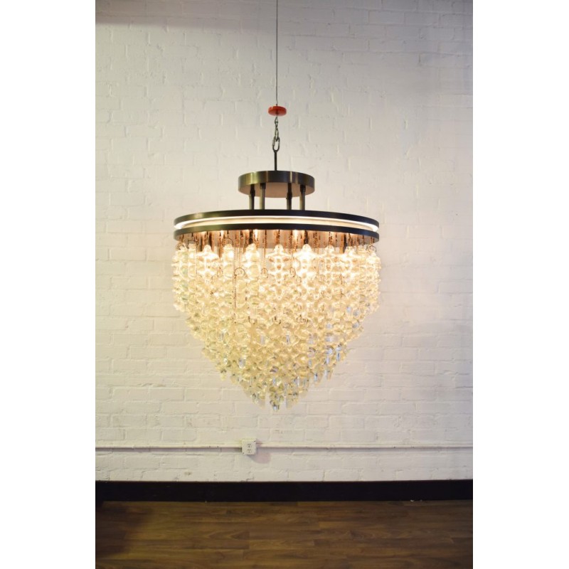 Tiers of organic Venetian glass elements, modeled after a brutalist sculpture, hang heavy yet light as air on strands of jewelers chain – like icicles melted in the winter sun and then frozen once more. Each Brutale glass piece, cast in quartz sand, glows with a fine molten texture and seeded bubbles that reveal the hand of the artist.