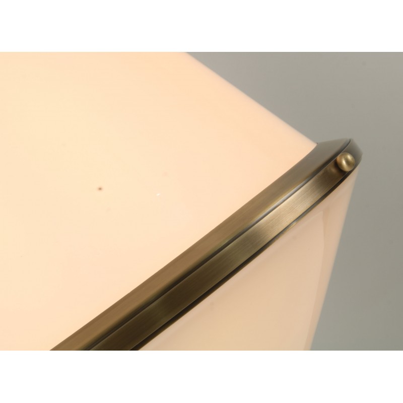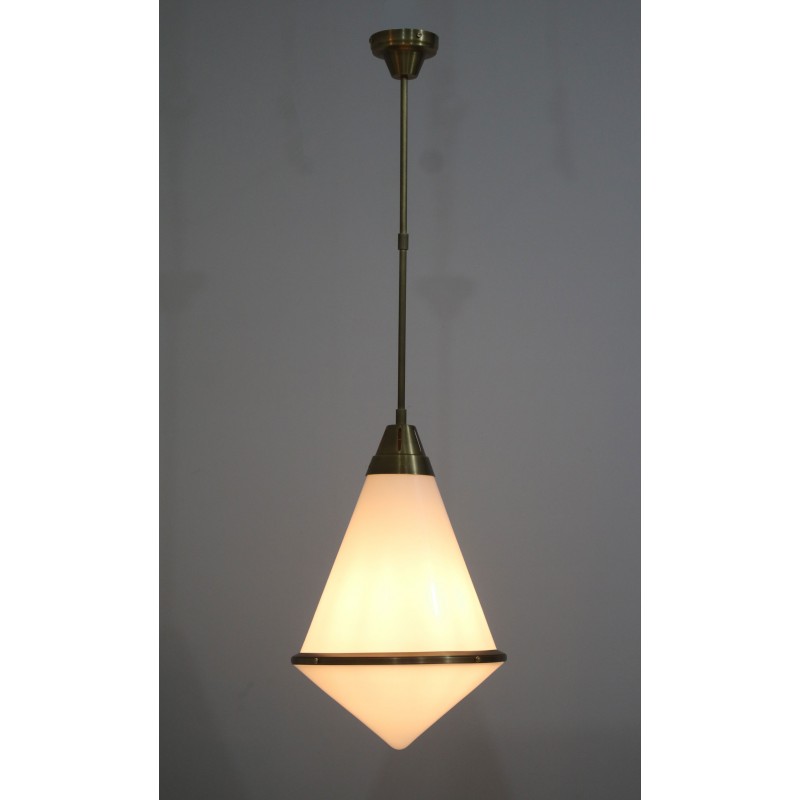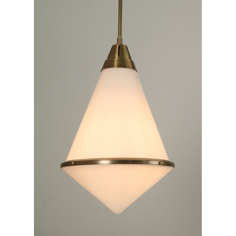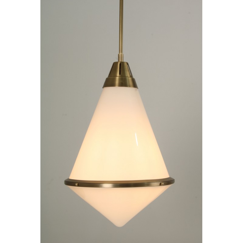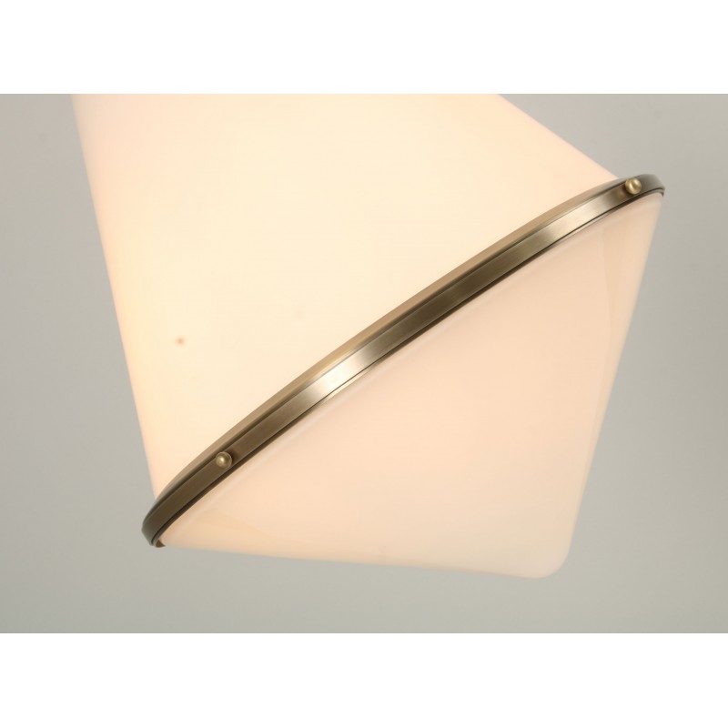 This modern looking lantern has a restrained style, yet is highly complex to engineer. Glass panels are suspended from a minimal bronzed brass frame, which encases the opaline glass shade. At Alan Mizrahi Lighting Design, we supply and manufacturer many highly sought after designer pieces.  All Chandeliers can be customized by a number of lights, style, color and size to meet your specific.