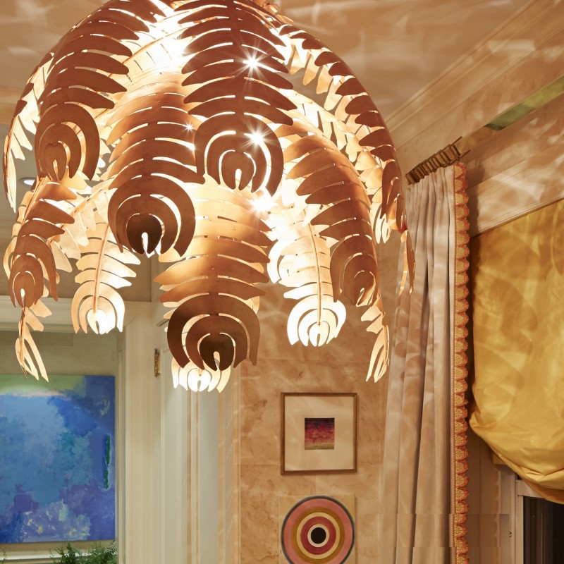 Original one of a kind chandelier. No two alike, each chandelier created from this design is one of a kind. This hanging light looks interesting from every angle and creates enticing shadows. One of the most technical chandeliers created. We approach this sculptural object in a contemporary, unexpected and creative way. Light and shadow interplay while existing harmoniously, using both to manipulate space and thought.