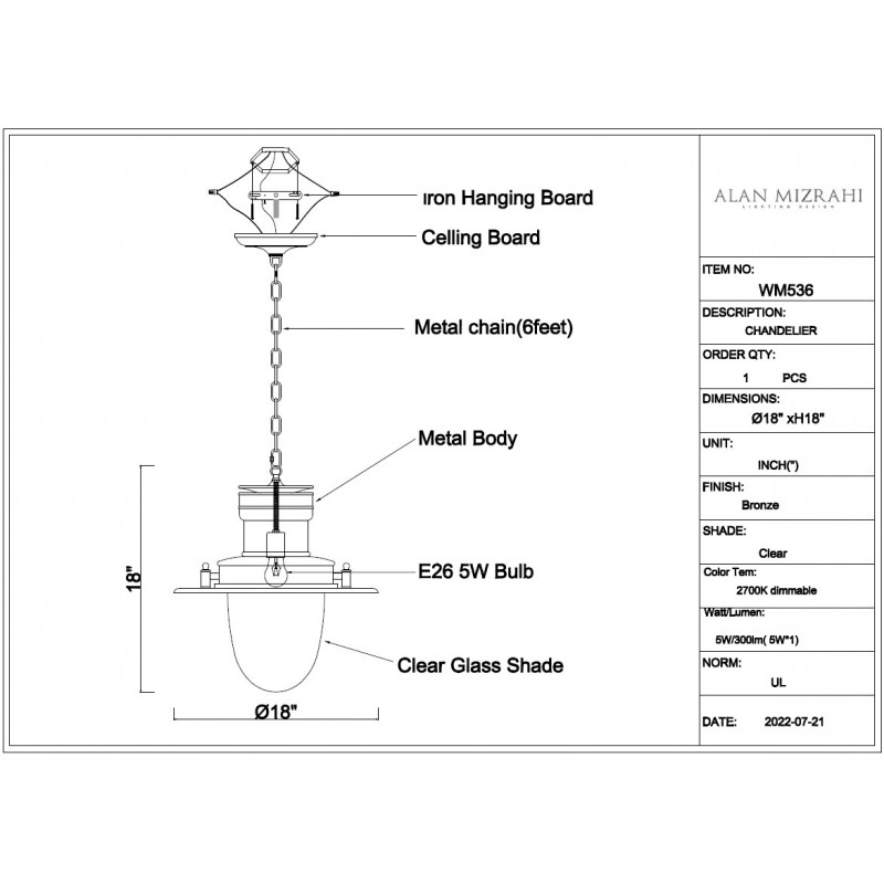 WM536 Large Station Light Pendant