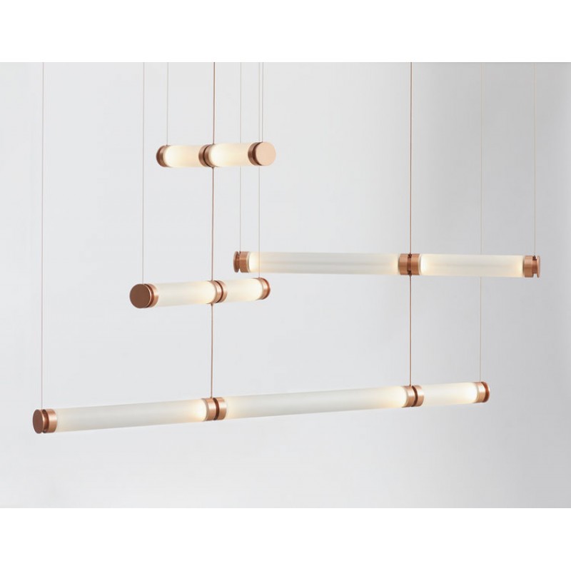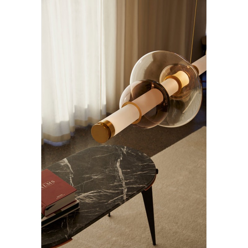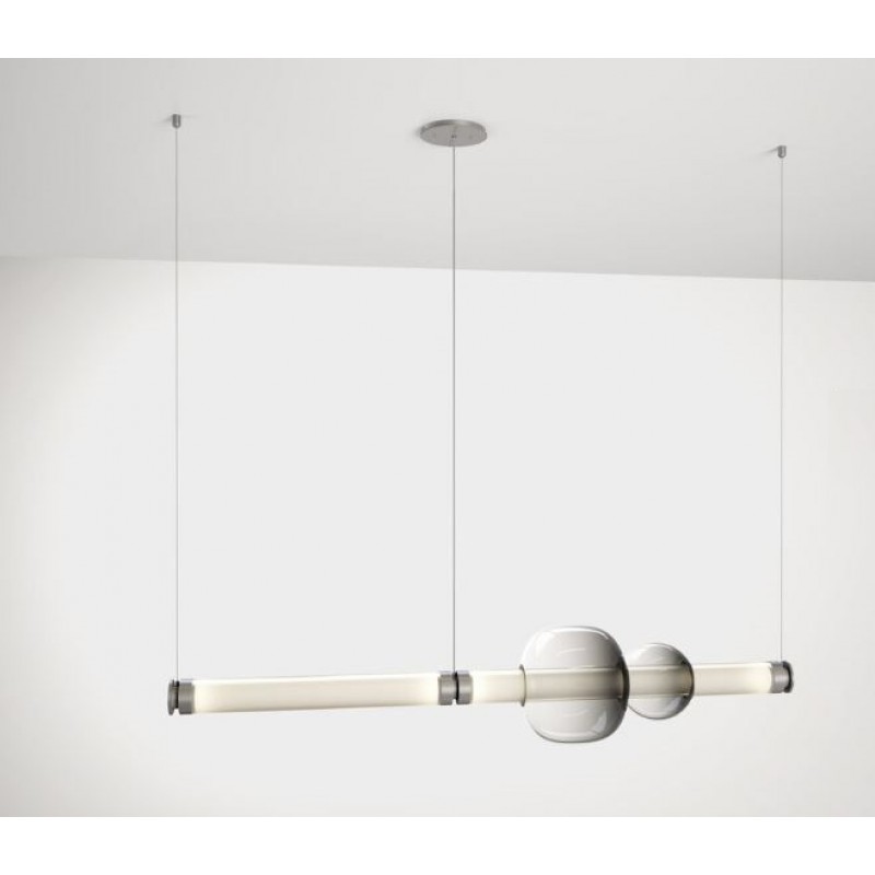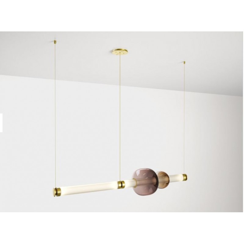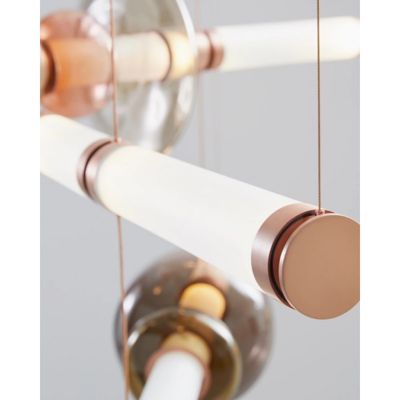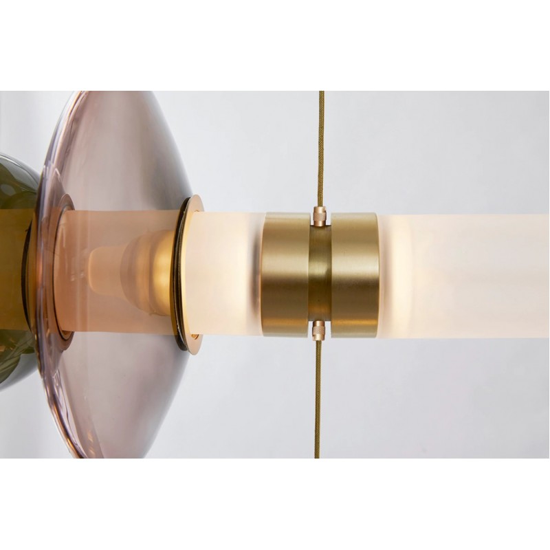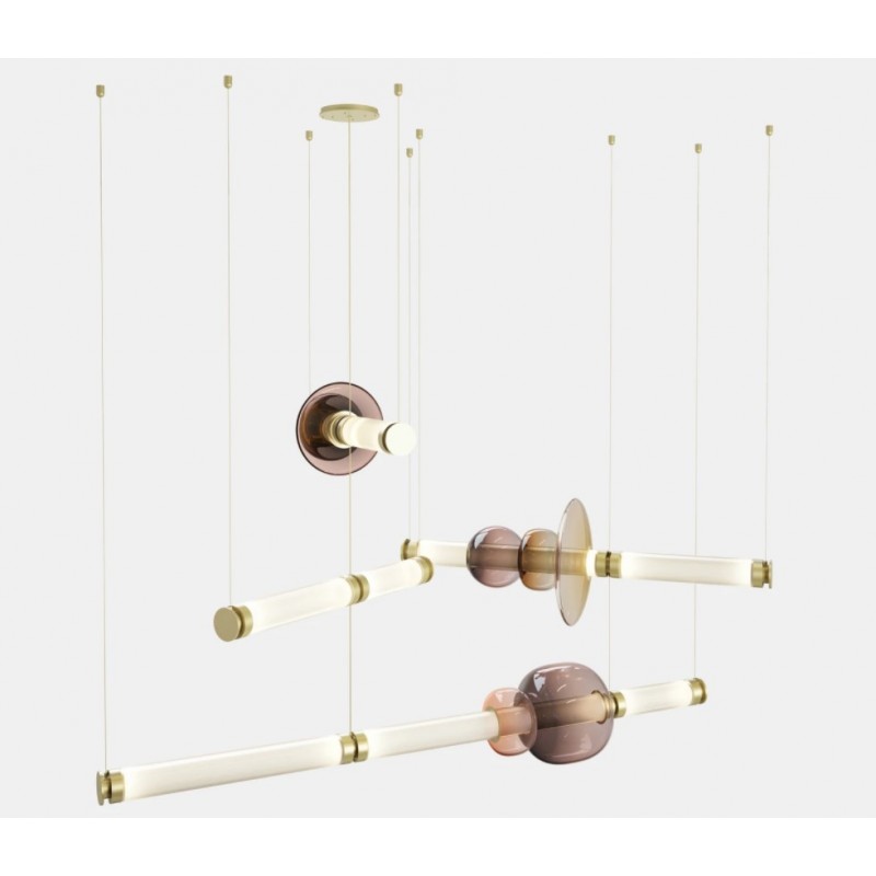 A lighting system with infinite interpretations, the LUNA is a synergy of color, shape, and refracted light. Inspired by a lunar halo, the modular light fixture grows in every direction as its assembly system stems horizontally or vertically, stacking color upon color of various blown glass shapes. The LUNA series is a glamorous reference to the moon’s diffused light and a soft glow. Allusive yet glamorous, the LUNA is a new tradition in glass-work and light form. Available in a variety of colors and shapes, LUNA is a highly customizable fixture.